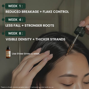 Scalp Support: Ashwagandha and Rosemary stimulate the roots for thicker, fuller-looking density.